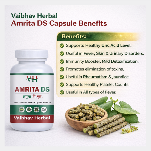 Vaibhav Herbal Amrita DS Capsules support detoxification, boost immunity, promote toxin elimination, and help maintain overall health naturally!